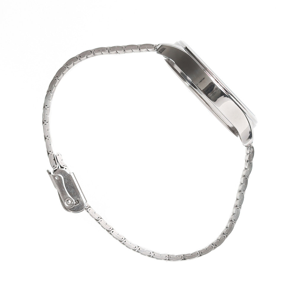 This classic analog watch for men features silver accent case and stainless steel bracelet. the minimalist and sleek design of the black dial provides a clear display of the time to make telling the time easier than ever before. over-all, the stunning silver accents creates a perfect balance of functionality and simplicity, that will help exude confidence to every gentleman wearing it.