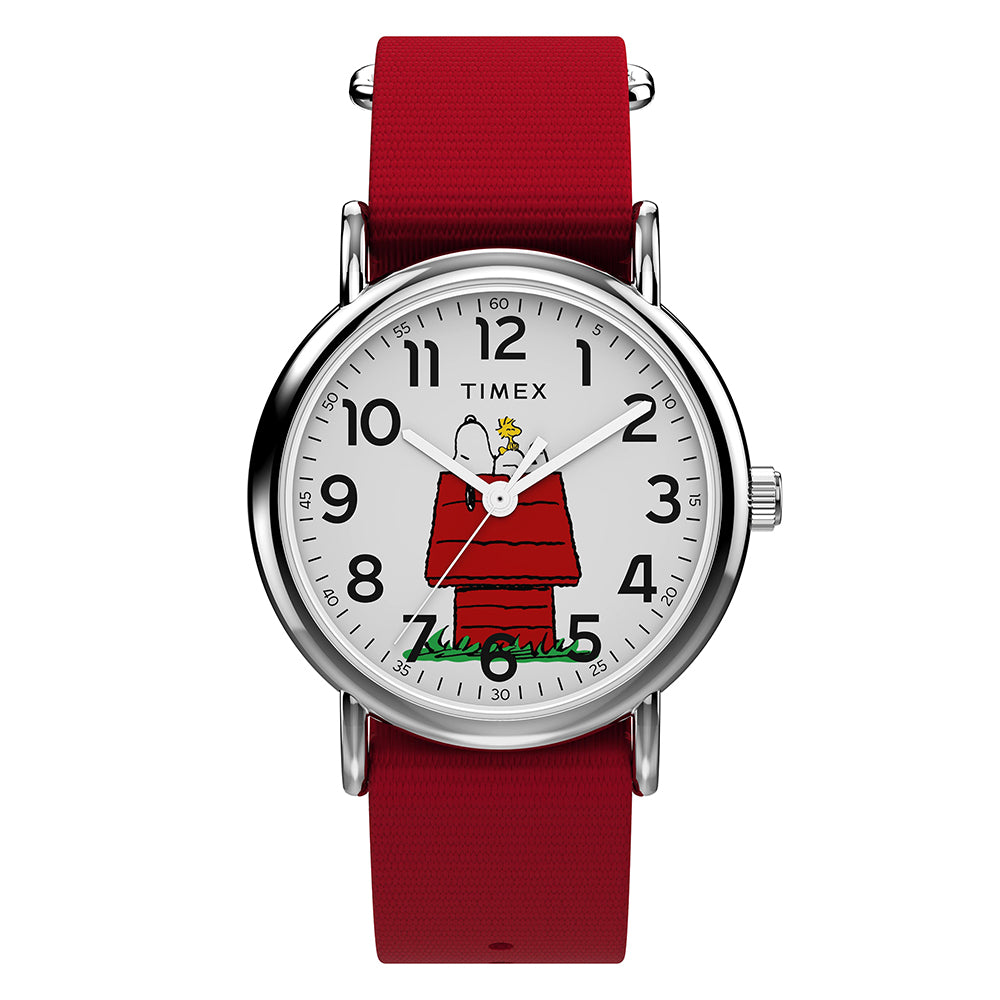 Designed for Peanuts fans of all ages, this playful iteration of our Timex Weekender captures your pals Snoopy and Woodstock on its clean white dial. We’ve paired its charming design with a sleek 38mm case and a red slip-thru fabric strap.