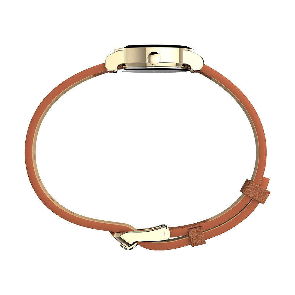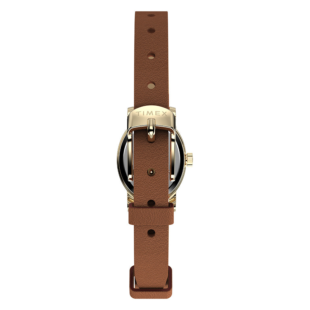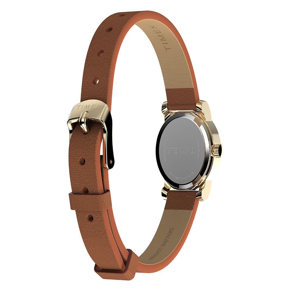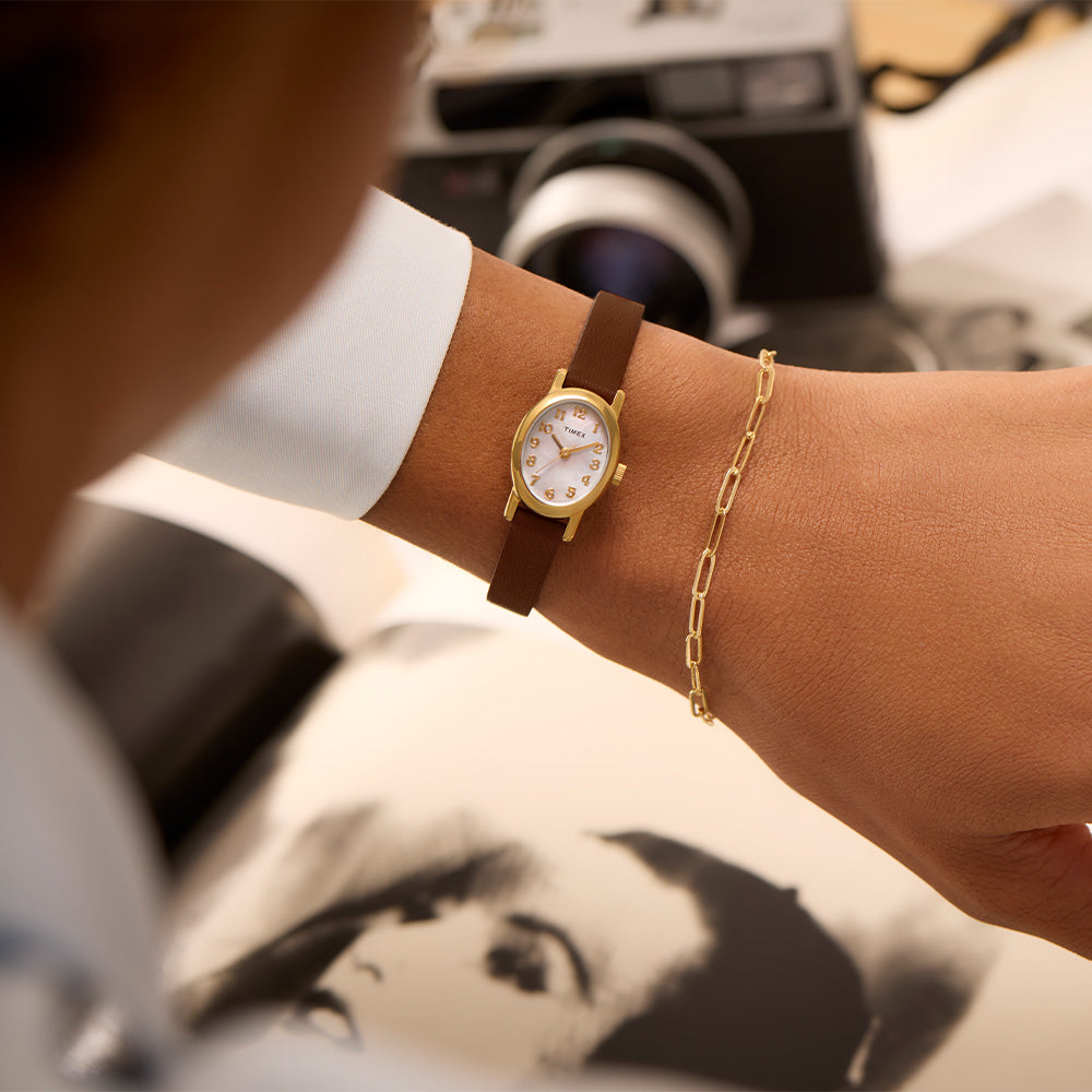 Our Cavatina remains faithful to its petite roots with a polished gold-tone 18mm case in a classic oval shape that whispers a timeless elegance on the wrist. We’ve updated it with an iridescent mother-of-pearl dial that shimmers with your every movement and a brown petite tapered leather strap with a smooth grain that's as on-trend as it is timelessly stylish.