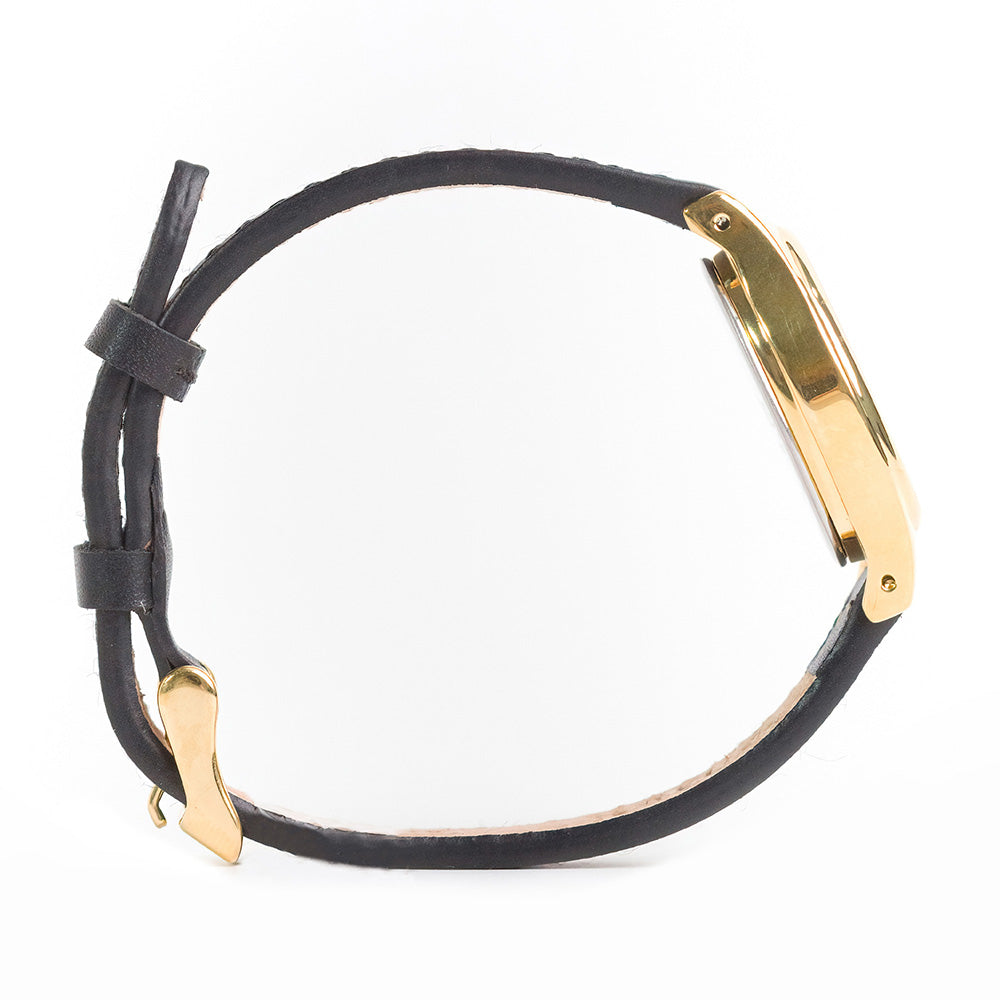 Paired with a matching black genuine leather strap, this watch exudes effortless sophistication, whether worn casually or for formal occasions.