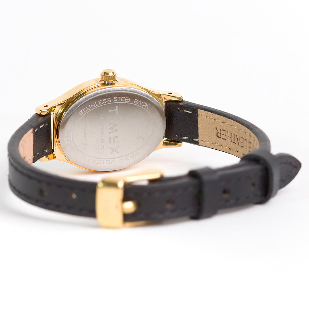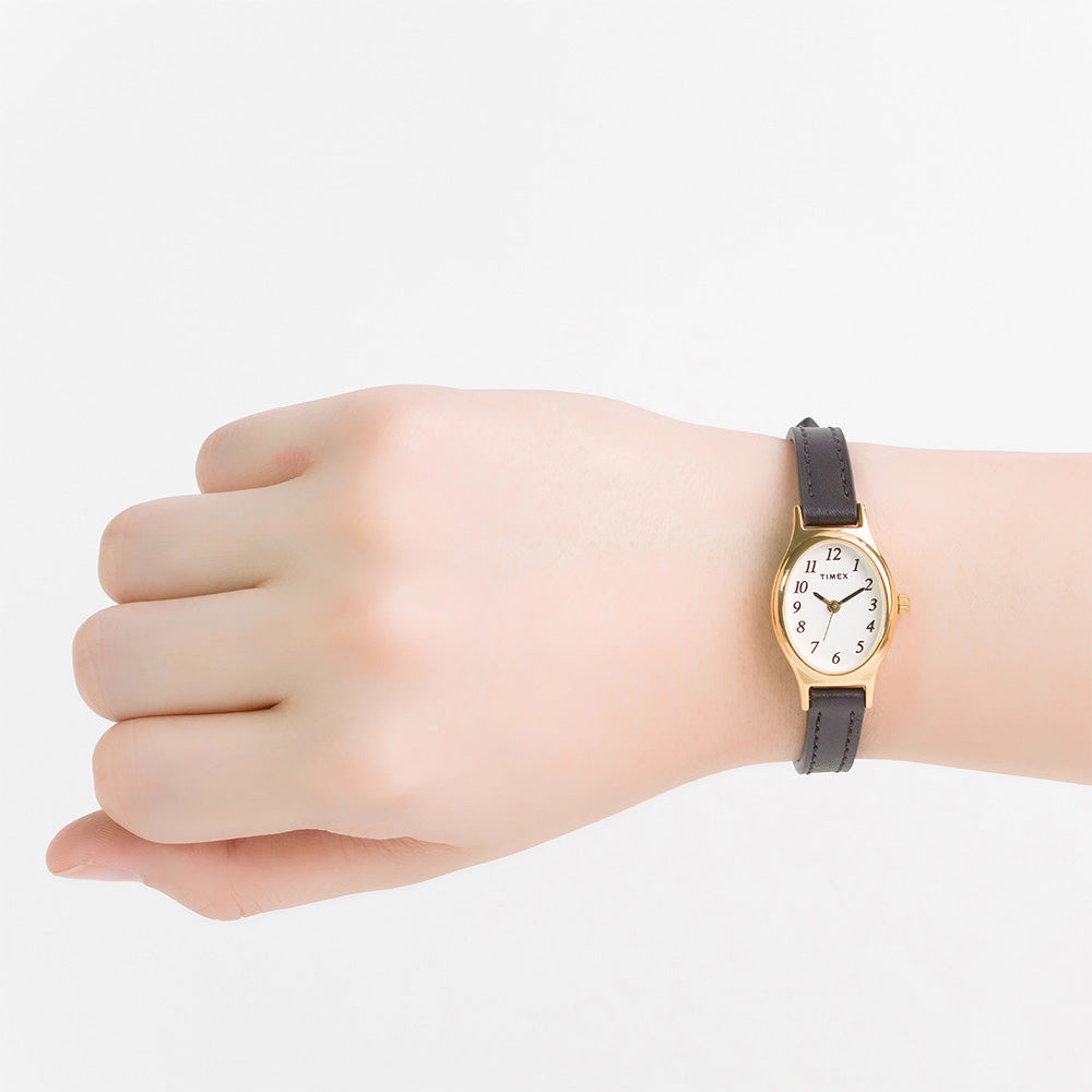 At the heart of this watch lies a precision-engineered oval-shaped case, exuding a sense of grace and femininity. The sleek stainless steel construction ensures durability while adding a touch of contemporary allure. Enhanced with a lustrous gold finish, the case radiates timeless charm and versatility.