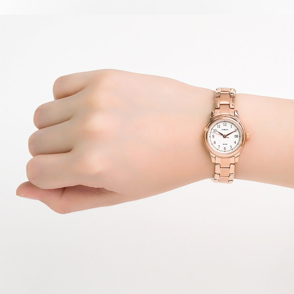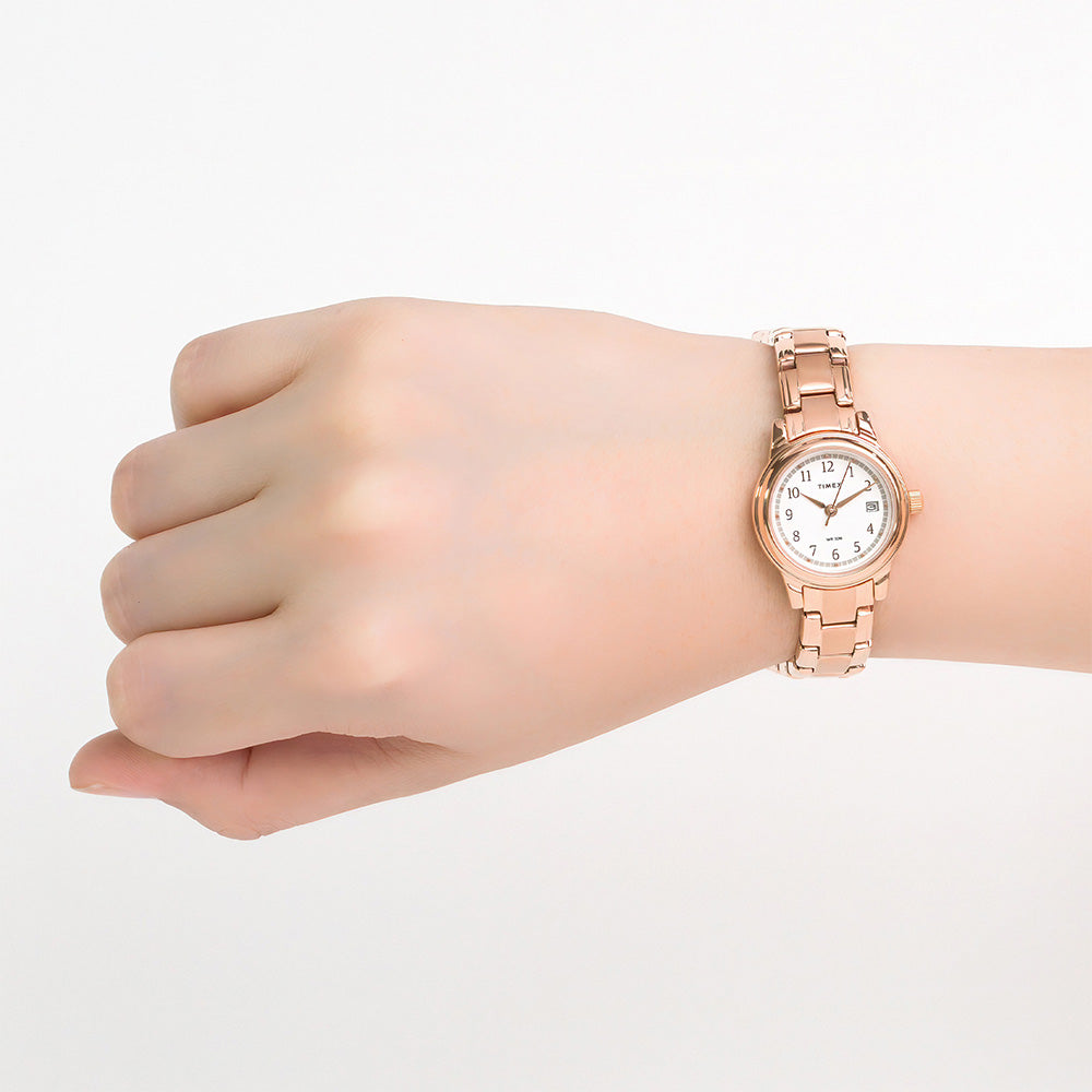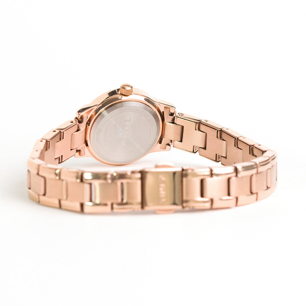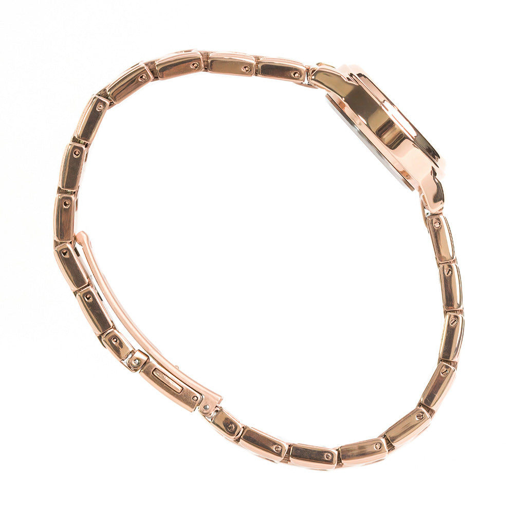 Embracing classic design elements, the watch boasts a beautifully polished rose gold-tone stainless bracelet, offering both comfort and style for the modern woman. Whether paired with a power suit or an evening gown, this versatile accessory effortlessly transitions from day to night with unparalleled grace.