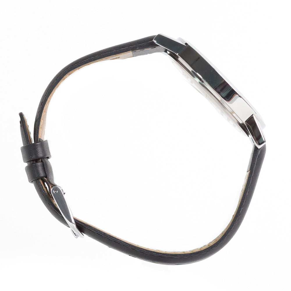 This classic analog watch for men features silver accent case and genuine black leather strap. the functional design of the silver white dial highlighting roman and line markers provides a classic and sophisticated display of the time. over-all, the stunning silver accents creates a perfect balance of elegance and simplicity, that will help exude confidence to every gentleman wearing it.