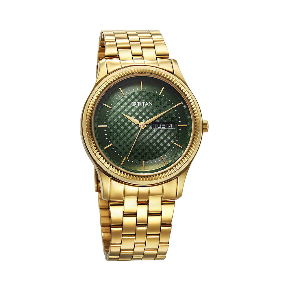 Add a touch of distinguished style to your wrist with the Titan Karishma Quartz Analog Watch for Men, featuring a striking green dial that radiates elegance and sophistication. The day and date functions ensure practicality, keeping you organized while maintaining a sleek design. Housed in a polished stainless steel strap, this timepiece boasts a refined, modern aesthetic that pairs effortlessly with both casual and formal attire. Powered by a precise quartz movement, it promises reliable timekeeping. With its bold green dial and classic stainless steel finish, this watch is the ideal companion for the gentleman who appreciates both style and substance.