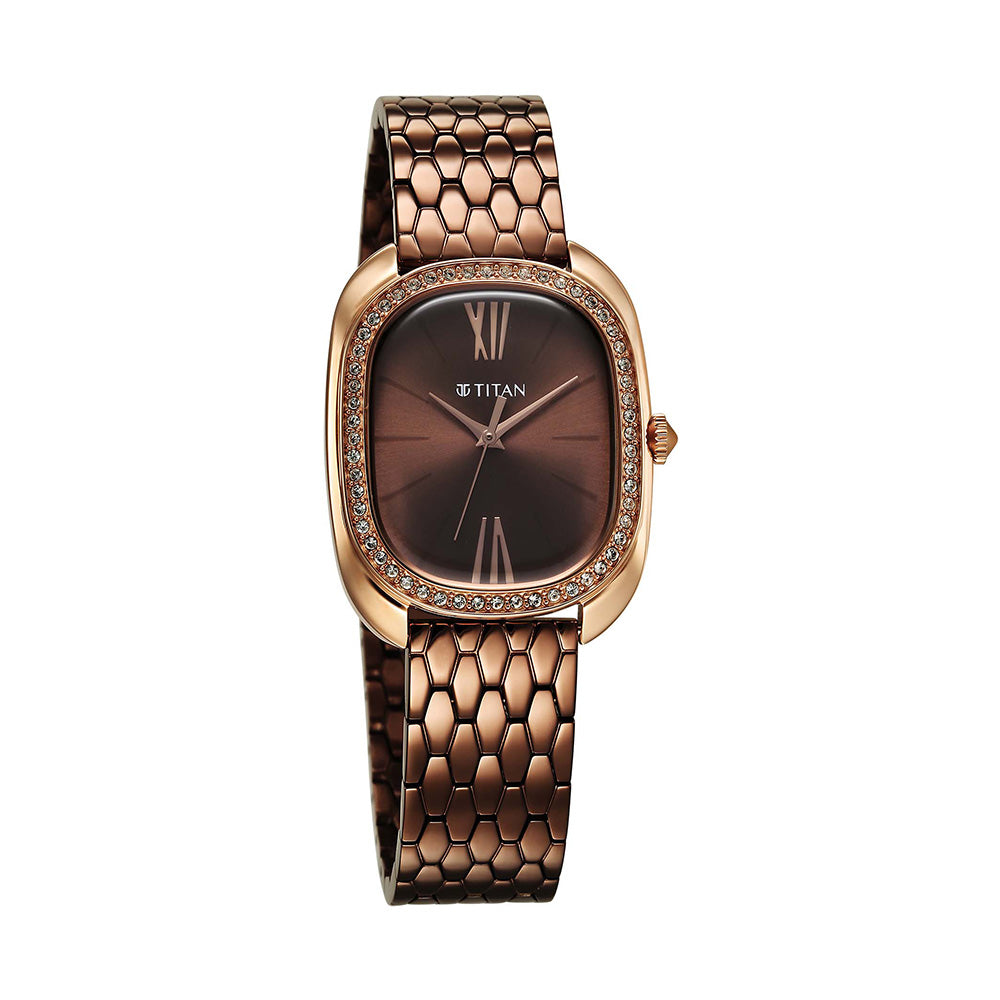 Titan Glamour watches blend elegance and modern design, offering timepieces that are as stylish as they are functional. With sleek dials, eye-catching details, and premium finishes, these watches are crafted to make a statement. Perfect for the fashion-forward woman, each piece reflects timeless beauty and adds a sophisticated touch to any outfit.