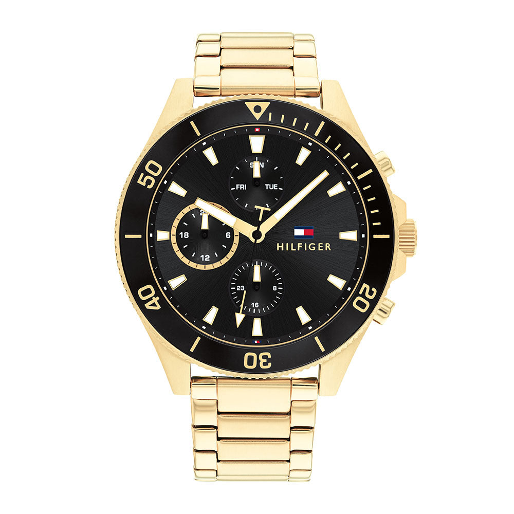 For the strong adventurer. A bold statement maker on a 46 MM case with a rotating coin edge bezel. The gradient fade dial features a highlighted sub eye and bold indexes. Available on bracelets, leather, and silicone straps with stainless-steel, gold-plated, gunmetal, and black IP finishes. 5 ATM
