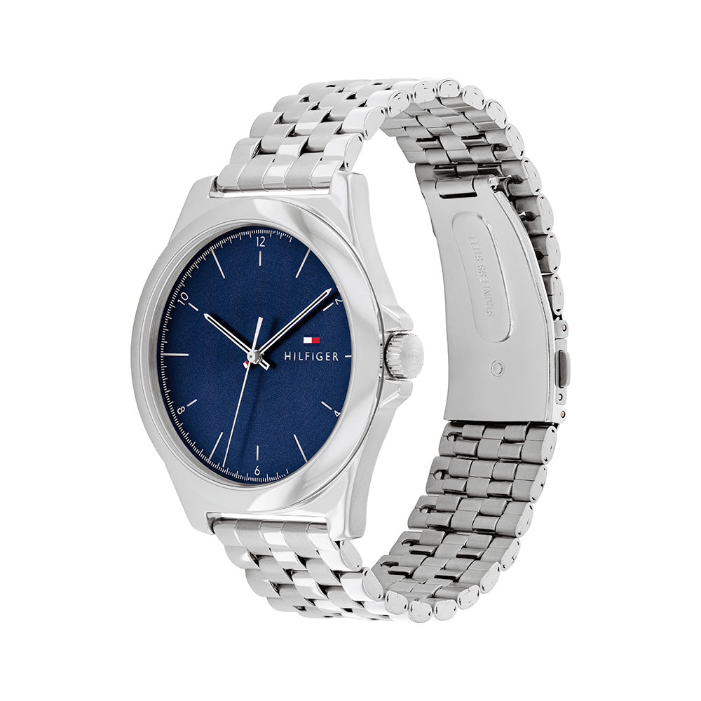 Presenting a timepiece that epitomizes understated elegance: an analog watch with a striking blue dial framed by a polished silver bezel, accompanied by a matching silver strap. This watch transcends mere functionality, embodying a blend of refined sophistication and contemporary style. Ideal for individuals who value both classic aesthetics and modern flair, it's a versatile accessory that effortlessly complements any ensemble, making a subtle yet distinct statement wherever it goes.