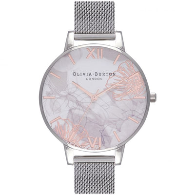 Polish off your look with this mixed metal big dial. Its striking abstract dial is created using a clever mix of sand-blasting and screen-printing techniques, then finished with carefully applied rose gold blooms.