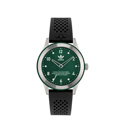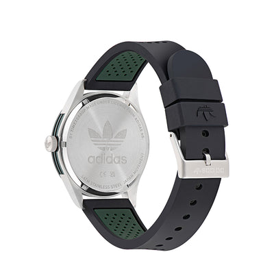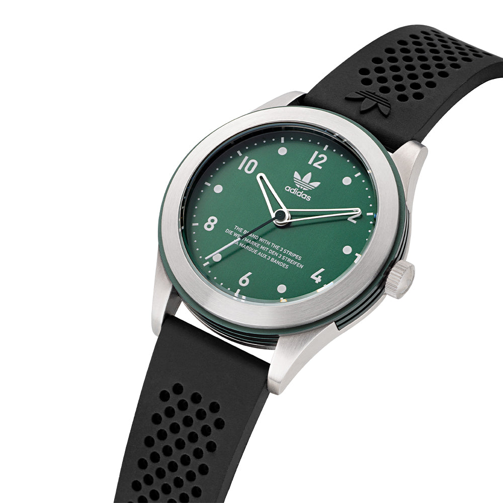 Designed for everyday versatility, this adidas Code Three watch reveals a forward-leaning attitude with its playful hands and colored aluminum insert around the case.