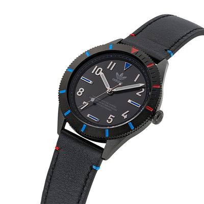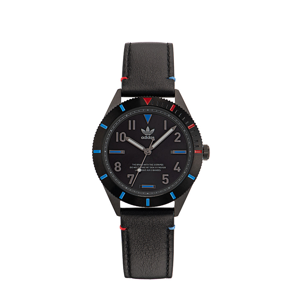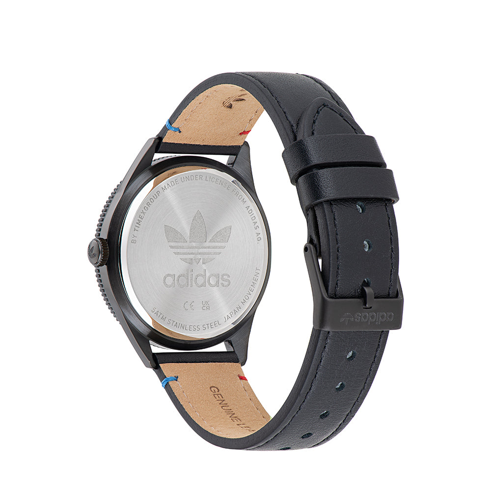 This watch provides classic style with useful, day-to-day functions. This adidas Originals Edition Three watch features a distinctive California dial mixing Roman and Arabic numerals on the watch face.