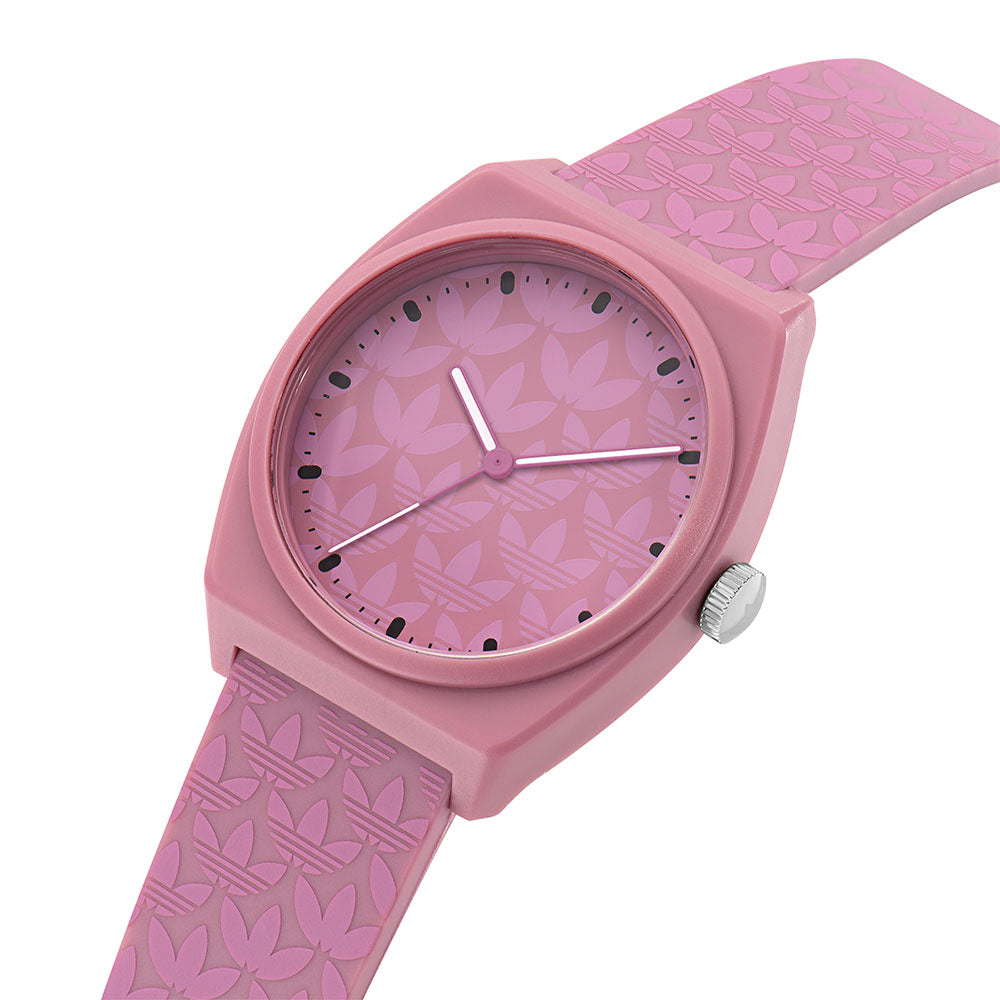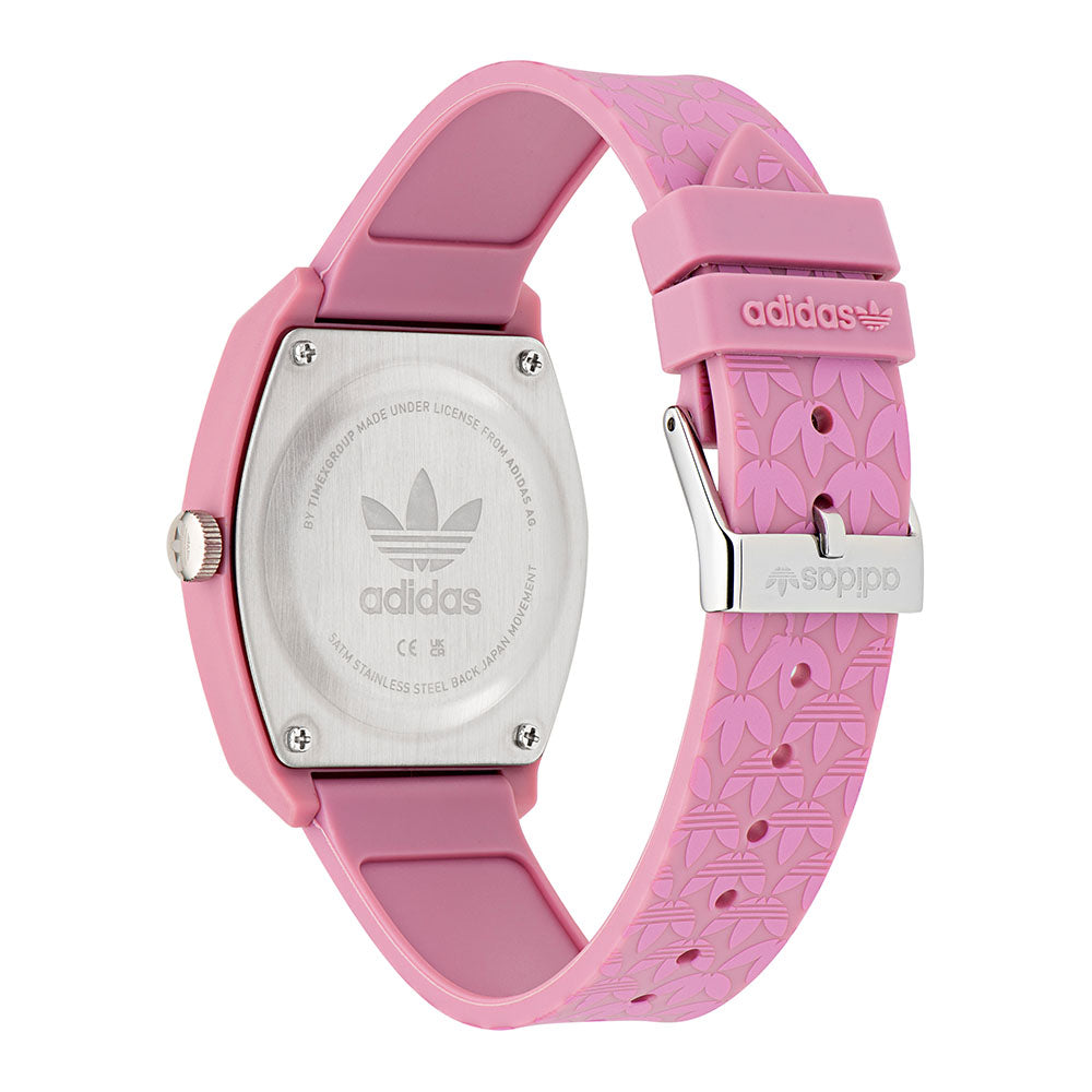 The perfect match between classic watch design, streetwear attitude and everyday comfort. This Project Two watch proudly shows off playful adidas Originals graphics. A resin case and strap elevate durability.
