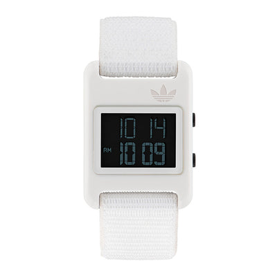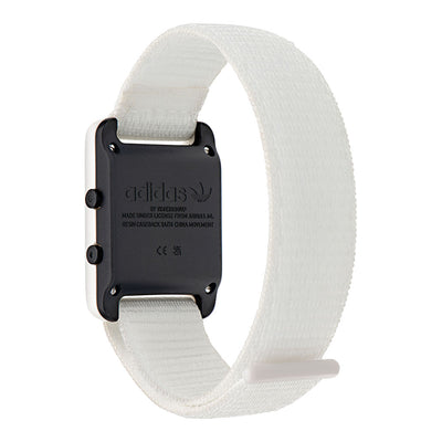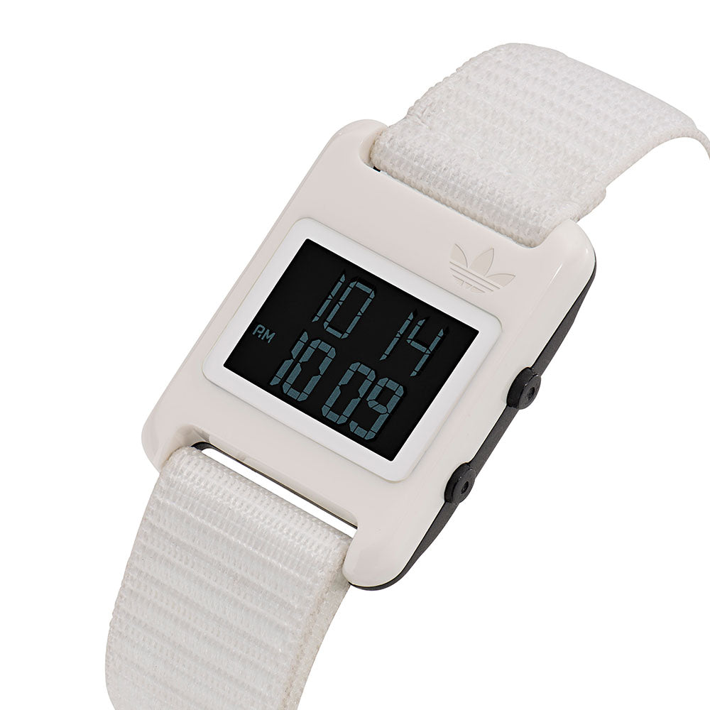 The unique and iconic Retro Pop silhouette turns digital. This watch features a mix of vintage and modern style. With his minimal geometries and a cool colour palette, it perfectly express the young and unconventional side of adidas Originals.