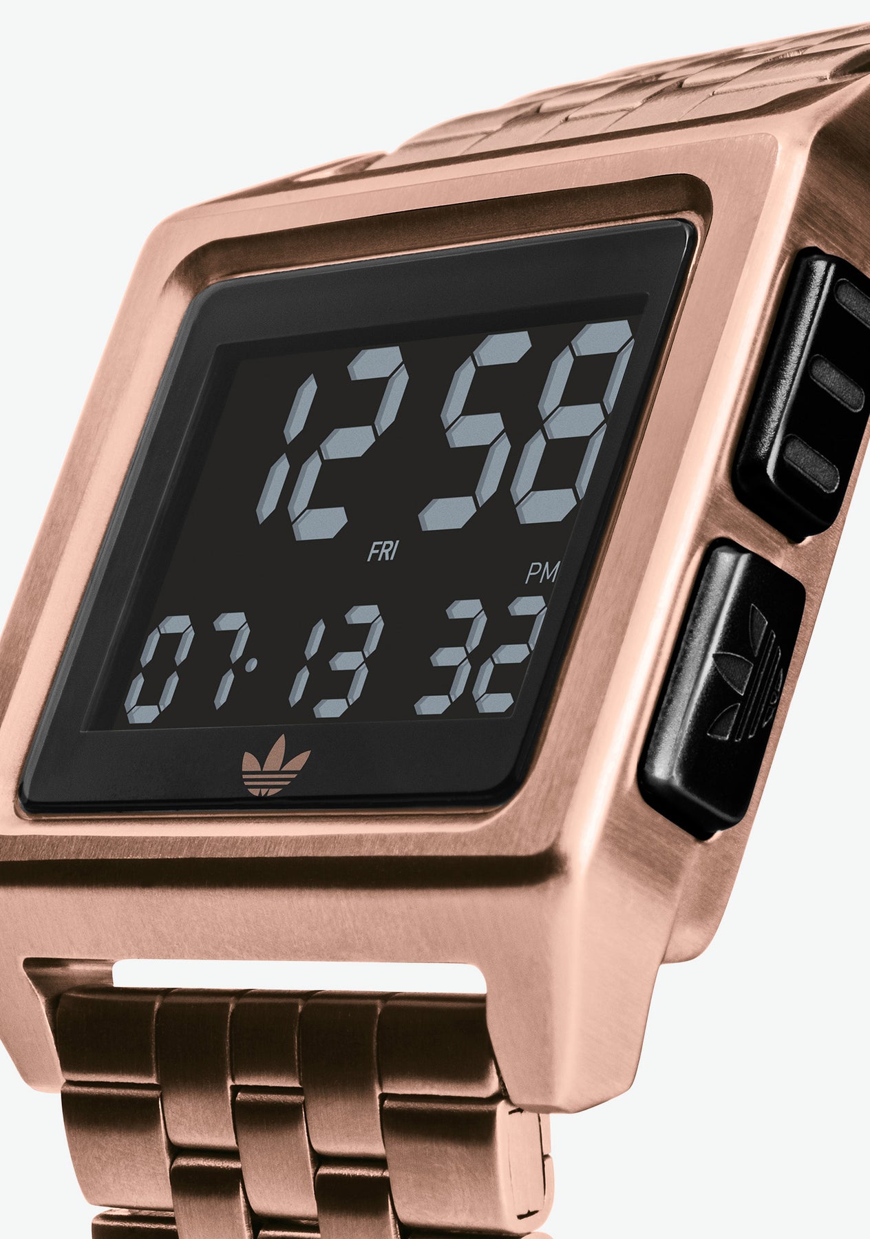 ARCHIVE_M1 pulls inspiration from adidas’ rich heritage of the 70’s and nods to the more simple time at the dawn of the digital era. An antidote to today’s gadget-fueled age of information overload, ARCHIVE_M1 offers a modern and progressive interpretation of a timepiece that feels familiar, yet new.