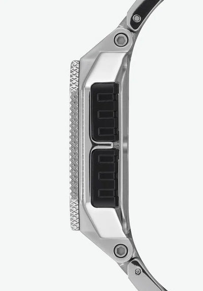 Inspired by the past but always looking to the future. ARCHIVE_MR2 is a modern utility iteration of a digital watch in the Archive franchise. Taking what the Contemporary Streetwear consumer loves in the ARCHIVE_MR2 and turning up the volume and forging those features in full metal.
