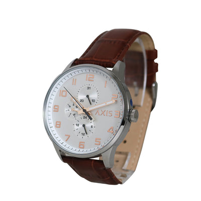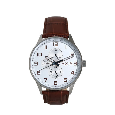 Keep things classy and professional with our brown leather bracelet and white dial. It has a classic appearance and a multi-function dial with day and date functions.