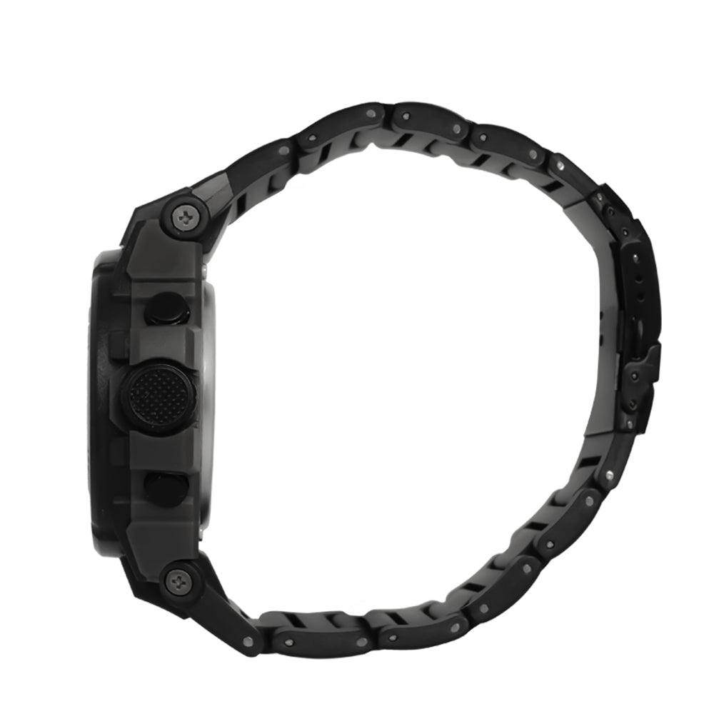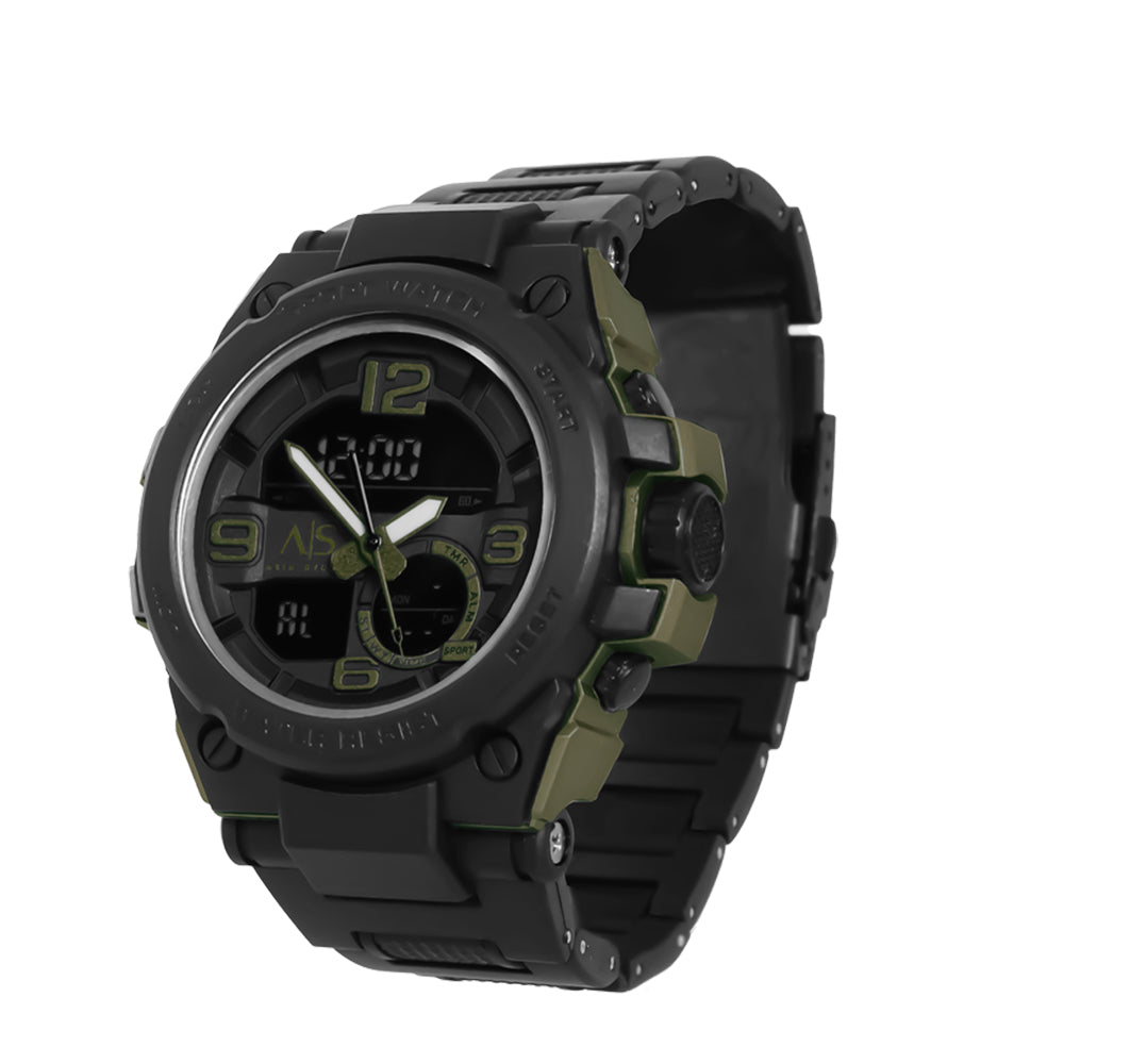 Looking for something beyond the ordinary combination? Introducing a one-of-a-kind timepiece that boasts an appealing green and black colour structure. Crafted from lightweight fibre resin, this ana digi watch effortlessly blends style and functionality. Ideal for a day that strives to make a statement. With its impressive 53mm case size, this timepiece is guaranteed to make a statement.