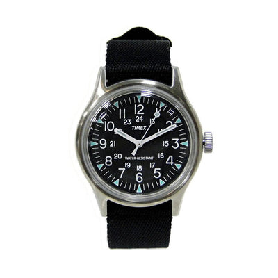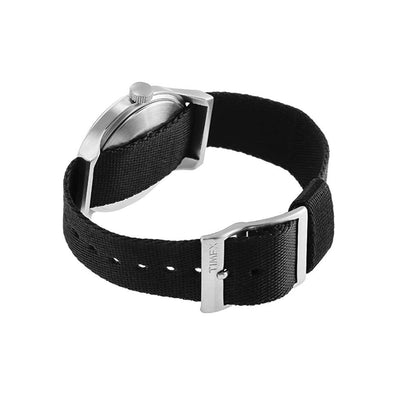 This clean, simple, military-inspired Timex Expedition Camper watch hasn't changed much since 1918. We just made it a little lighter and added a black fabric slip-through strap fitted with a tang buckle.