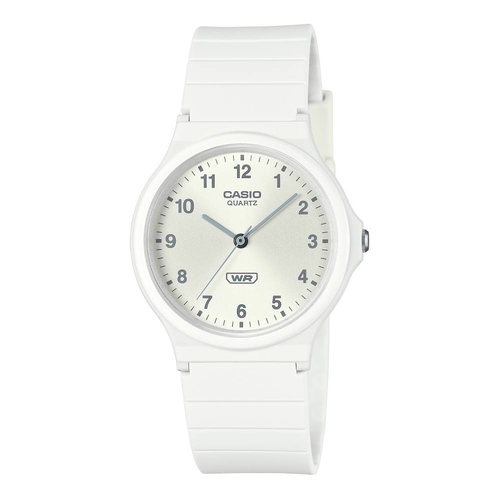 The best-selling MQ-24 is back, now made with more environmentally responsible materials. The hour, minute, and seconds hands design features simple index numbers in lineup of different monochromatic color schemes, all polished to slim, minimalist look and feel. The band is made with bio-based resin, material expected to help reduce environmental impact.