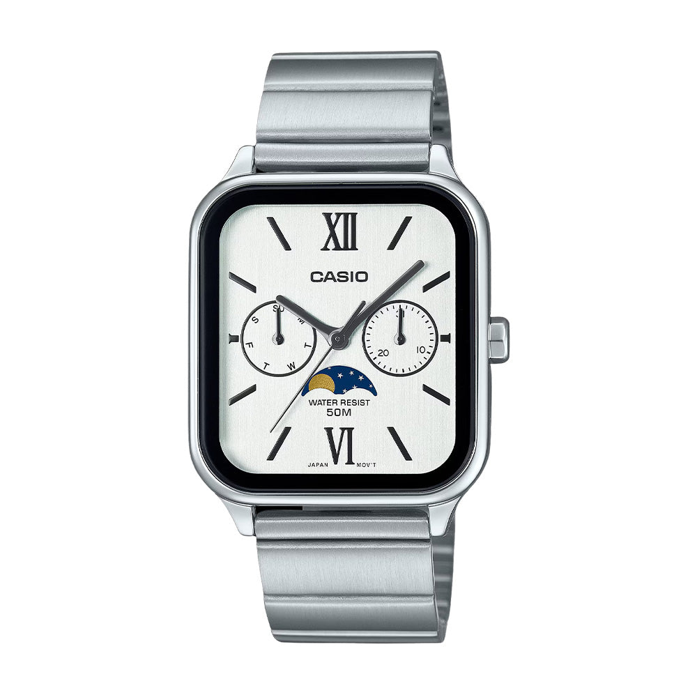 To the moon and back track the lunar phases with striking analog timepieces featuring multiple inset dials.These timepieces bring together stylish fashion and classic lunar design. Take your pick and stay on track whether youƒ??re on or off the clock. Water resistance up to 50 meters frees you from worry when washing up or caught in the rain.