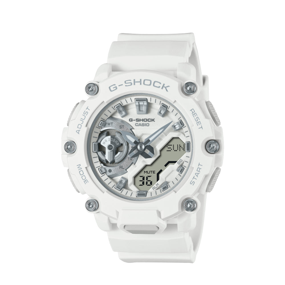 Urban outdoor fashion meets subtle monochromatic color schemes and standout design. Keeping the sporty GA-2200 design with analog hands and digital display, but with a slightly smaller case and slimmer design for an even more comfortable fit.