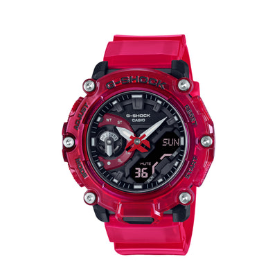 Inspired by a surge of sound flowing over a dance floor, these watches translate this vision into color and design for a stereophonic take on the sporty GA-2200 featuring analog hands and digital display.