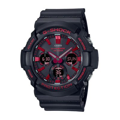 Make a bold, powerful statement with the Ignite Red line in the iconic black and fiery red that embody the ultimate toughness of the G-SHOCK brand. We have injected a few of our flagship models ? the octagonal GA-B2100 with Bluetooth and solar power; the oversized, solar-powered GAS-100; the GA-100, GA-2200 and GA-700 with signature oversized case ? with the strength and passion of the black and red G-SHOCK brand colors. Deep, blazing red accents against striking, dark black give these watches, and the wrist that wears them, a kick of cool confidence.