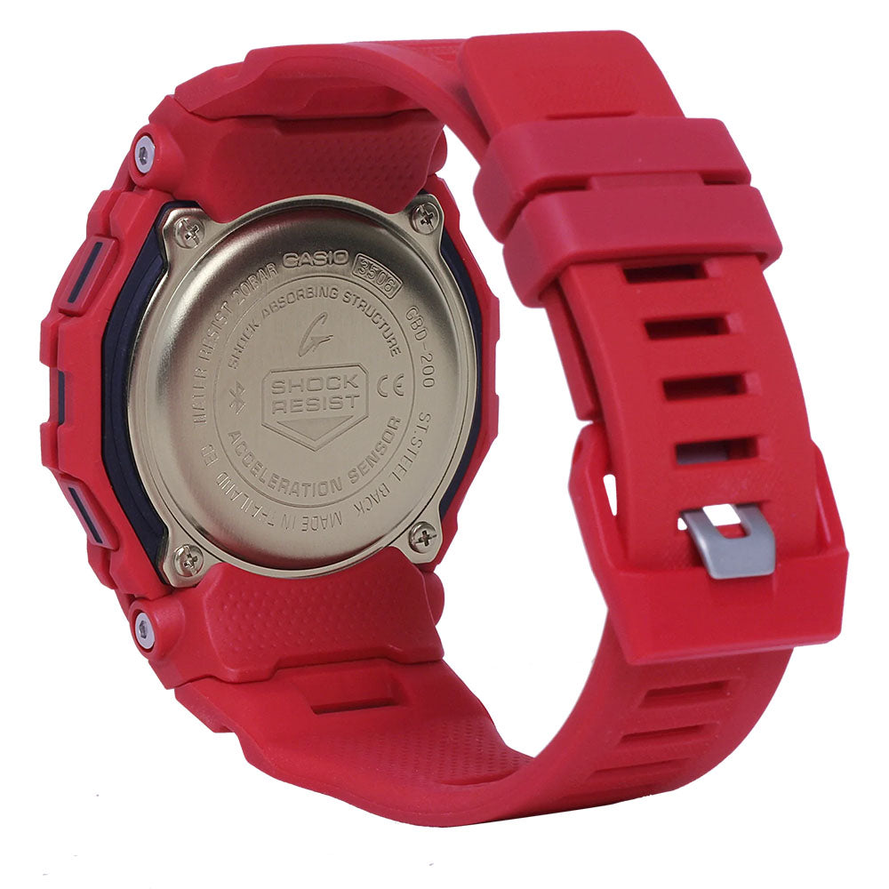 Introducing a sporty G-SHOCK in vibrant red. Take your training to the next level with this burst of bold color. As much function as style, this G-SQUAD watch delivers all you need for the ultimate workout. Access your smartphone GPS for precision accelerometer measurement when tracking running distance, speed, pace, and calories burned.