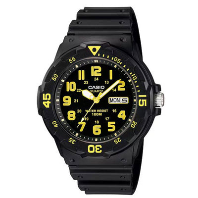 Designed for adventure, this Casio watch features 100-meter water resistance and rotary bezel, perfect for the active lifestyle. Large, easy-to-read Arabic numerals and day-date display ensure practicality meets rugged style, making it an essential piece for everyday wear.