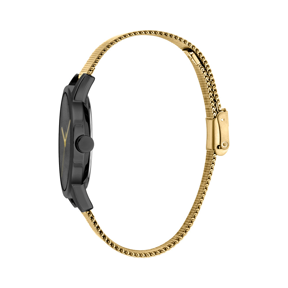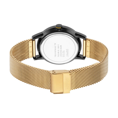 Modern architecture seems to be the key inspiration for this Gents model. This classic looking round watch with Milanese strap is perfect for any occassions.