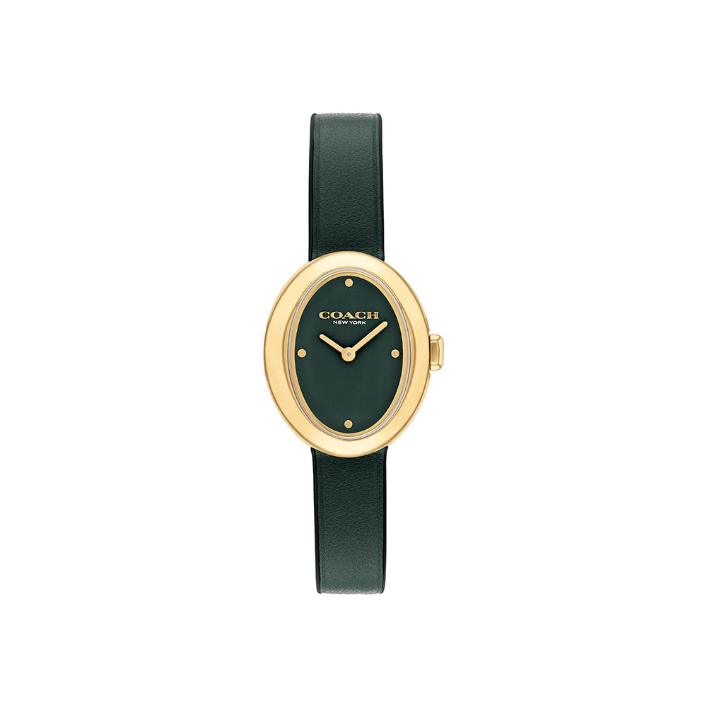 Introducing a watch that exudes timeless sophistication and charm: its petite oval green dial, reminiscent of the finest jewelry, harmonizes beautifully with a luxurious green leather strap and a refined gold bezel. This combination not only enhances its aesthetic appeal but also represents a seamless blend of classic elegance and modern refinement. The green dial, vibrant yet elegant, serves as a focal point, complemented by the richness of the leather strap and the brilliance of the gold bezel. This watch is more than just a timepiece; it's a statement of impeccable taste and discerning style, perfect for those who cherish both tradition and innovation in their accessories.
