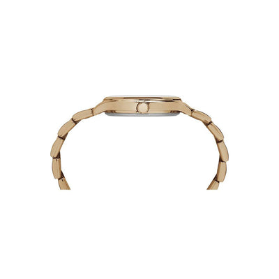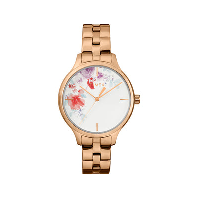 Wear a touch of sparkle every day or night with Swarovski® crystal accents on a floral watch dial. A polished rose-gold tone case and bracelet completes the perfect look.