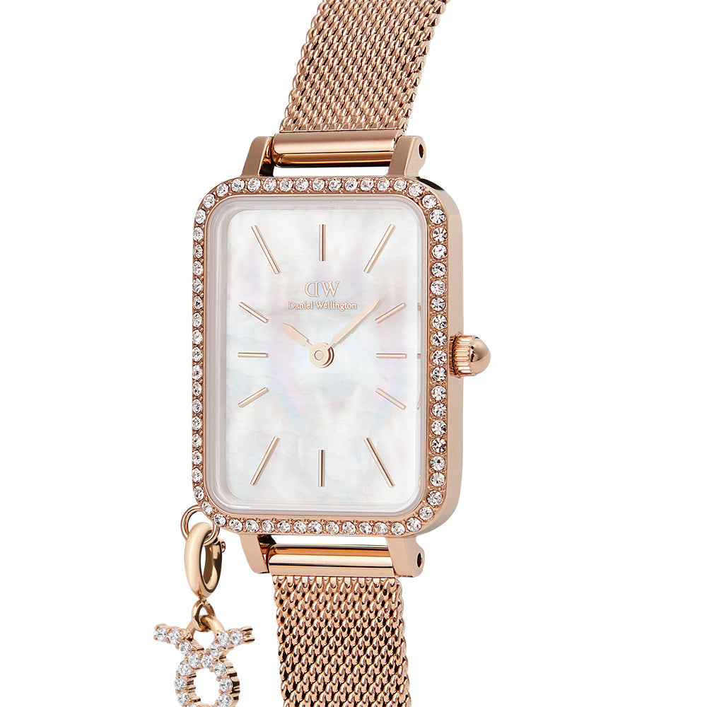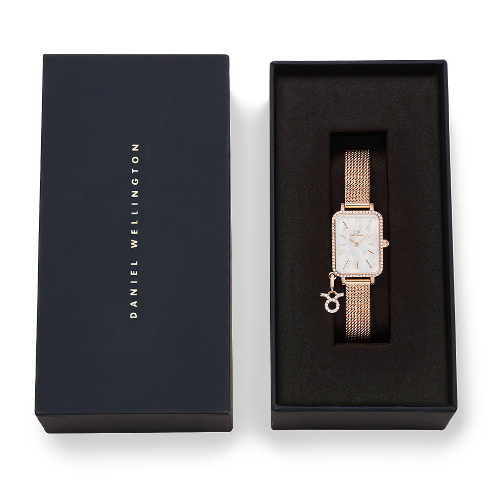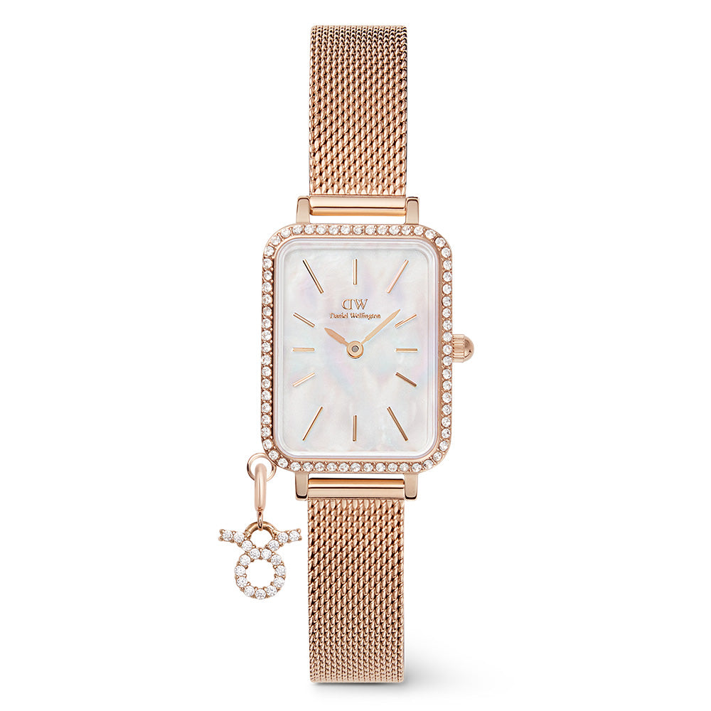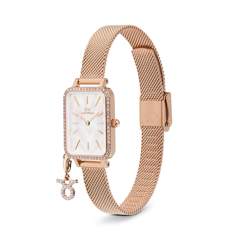 Ambitious Aries, loving Libra, poetic Pisces—add a piece of personality to your outfit with our Quadro Crystal Zodiac watch. Framed by crystals along the Lumine bezel, the real white mother of pearl dial brings a lustrous sparkle to your wrist. Choose your sign and embrace the elements that make you, you—or switch things up to signify another special moment or person: both the rose gold mesh strap and the crystal charm are interchangeable.
