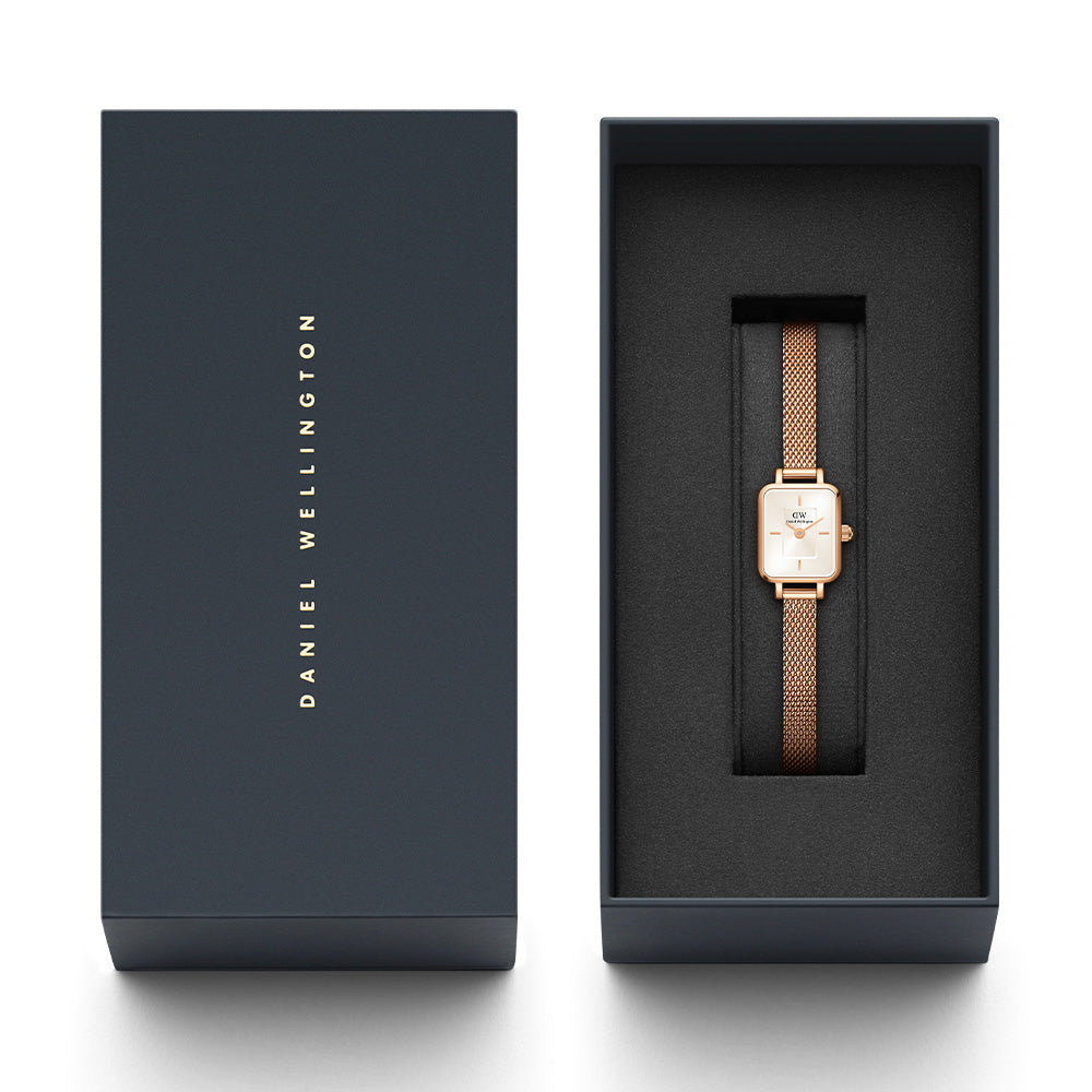Designed at the intersection of watches and jewellery, the Quadro Mini has much to reveal. Our smallest watch to date features a compact Quadro dial in champagne with a refined sunray finish and two index markers for a minimalist look. The fabric-like mesh bracelet has the delicate allure of an elegant bracelet; however, it’s interchangeable, adding even more versatility to the piece. Like most of our watches, this timepiece is crafted from durable 316L stainless steel, with high-quality plating in rose gold. So, wear it as a watch and love it as an exquisite piece of jewellery!
