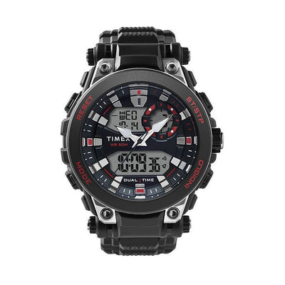 We’re pushing digital into the future with our DGTL Ana-Digi. The analog and digital combination display looks complicated, but is easy to use. Built to keep up with your active lifestyle, this watch features a stopwatch, daily alarm, second time zone, water-resistance up to 50 meters and our INDIGLO® backlight.