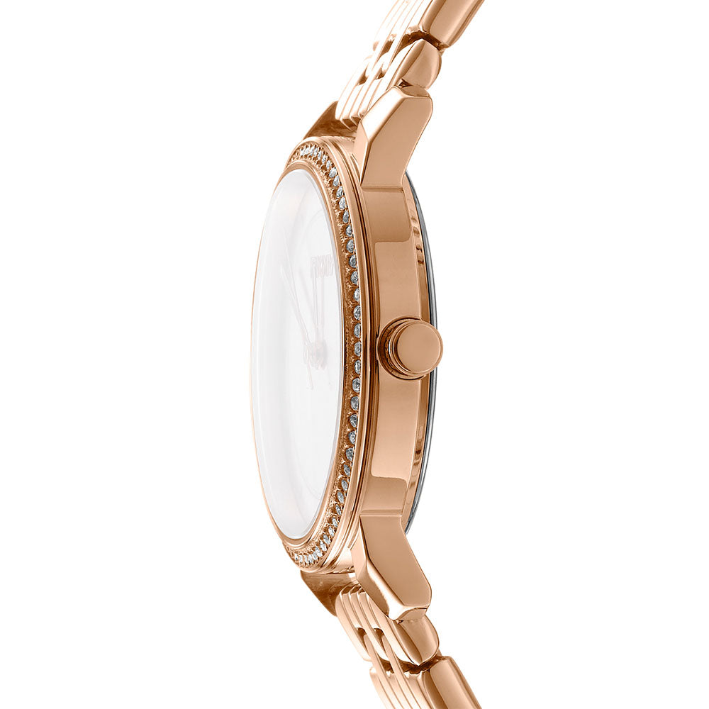 Sleek and sophisticated, this watch is a perfect blend of elegance and urban style. The crystal-studded bezel adds a touch of glamour, while the minimalist dial keeps it effortlessly modern. Finished with a polished metal bracelet, this timepiece is a timeless statement for any occasion.