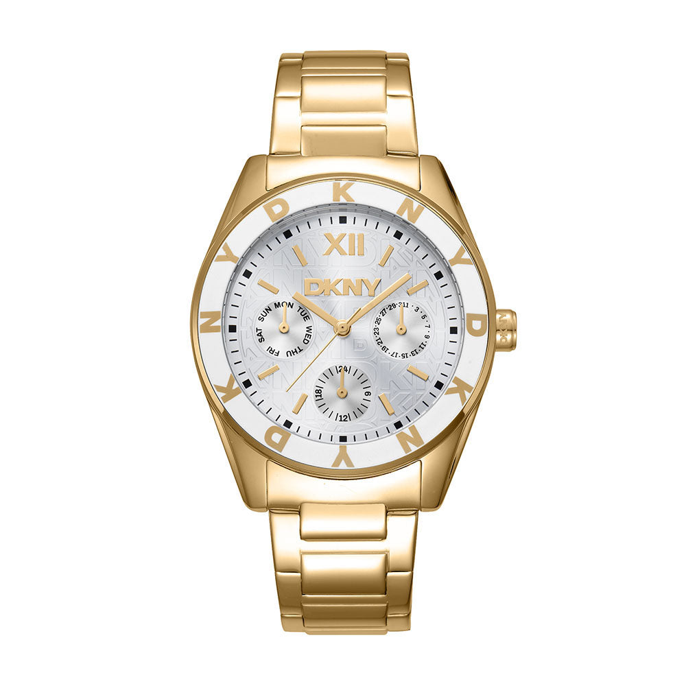 Bold and sophisticated, this chronograph watch blends luxury with modern functionality. The silver-textured dial, detailed with gold accents and multifunctional subdials, offers precision and elegance. Completed with a polished gold bracelet, this timepiece is a striking statement of timeless style.