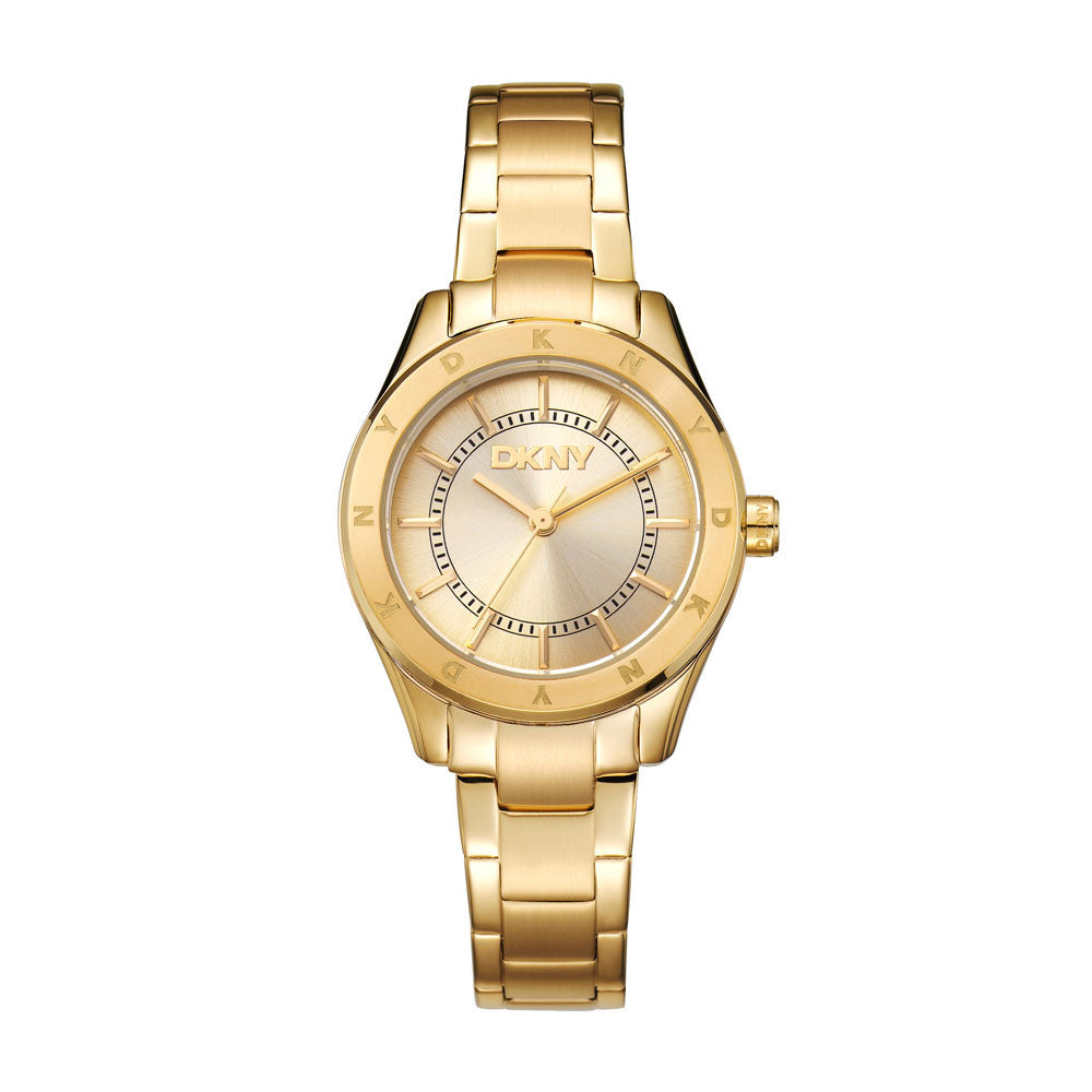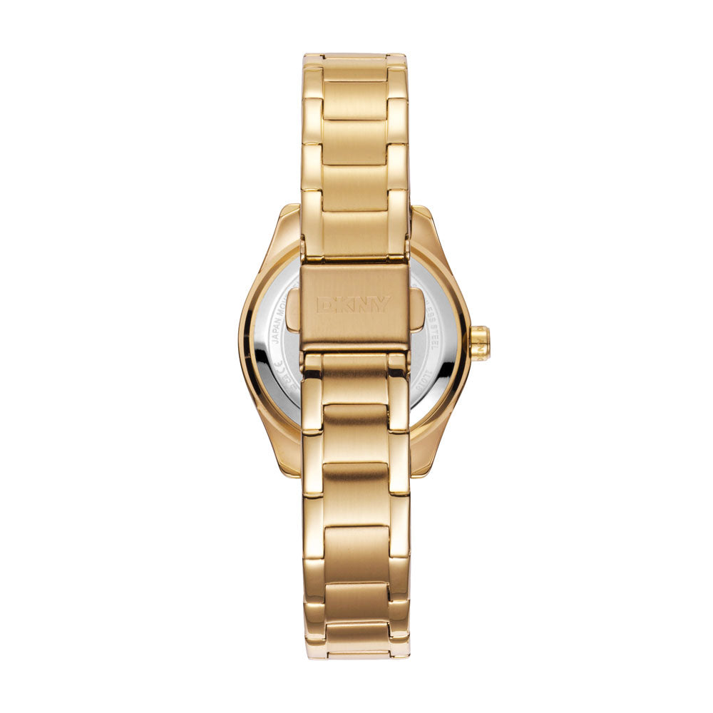 Featuring a 30mm round stainless-steel case, this timepiece showcases a bold, sporty design with DKNY letters encircling the bezel.