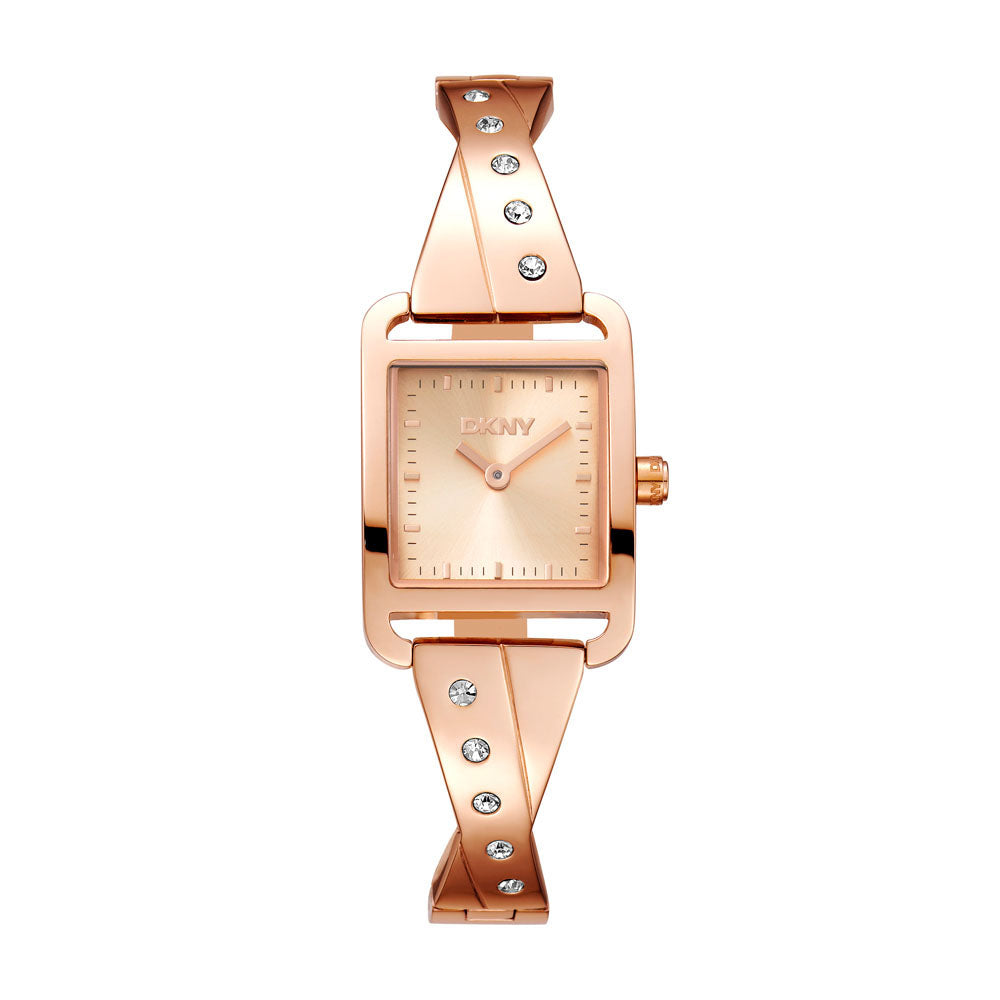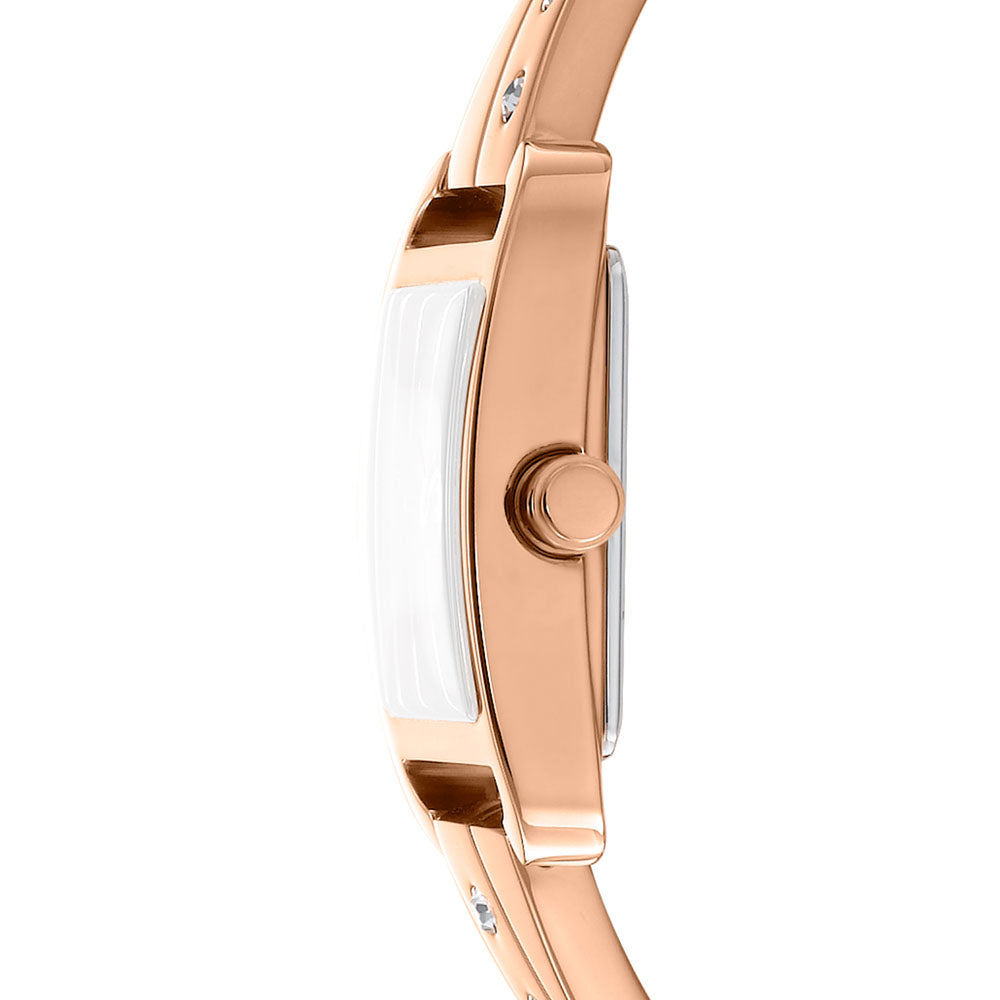 A perfect blend of grace and glamour. Featuring a soft champagne dial, a sleek rose gold-tone case, and a crystal-adorned bangle bracelet, this timepiece adds a touch of sophistication to any look. Designed for those who shine effortlessly.