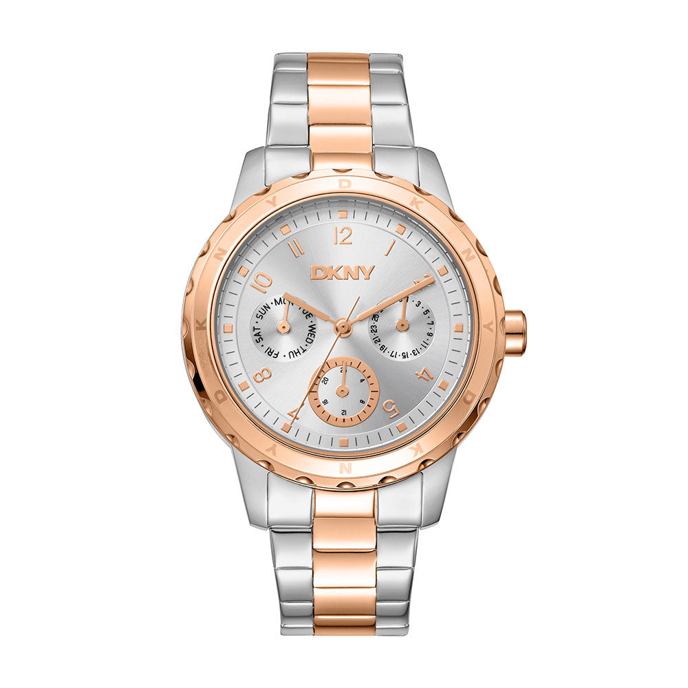 A perfect blend of sophistication and versatility, this chronograph watch features a sleek silver dial with rose gold accents. The multifunctional subdials offer precision, while the stainless steel and rose gold-tone bracelet adds a refined touch. A timeless statement piece for any occasion.