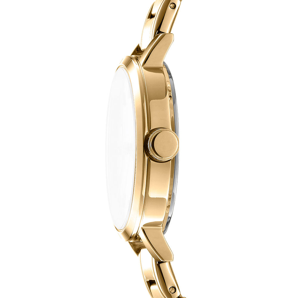 Sleek and sophisticated, this watch is the perfect blend of elegance and modern style. The crisp white sunray dial with delicate gold markers exudes timeless charm, while the polished gold bracelet adds a refined touch. Designed for effortless everyday wear, this timepiece is a statement of understated luxury.