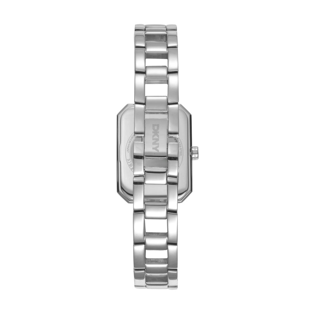 Featuring a sleek rectangular 22 x 35.5 mm stainless steel case with smooth, delicate angles, this timepiece adds effortless elegance to any look. The dial is accented with minimalist bar indexes, inspired by the iconic NYC skyline, creating a refined, contemporary aesthetic.