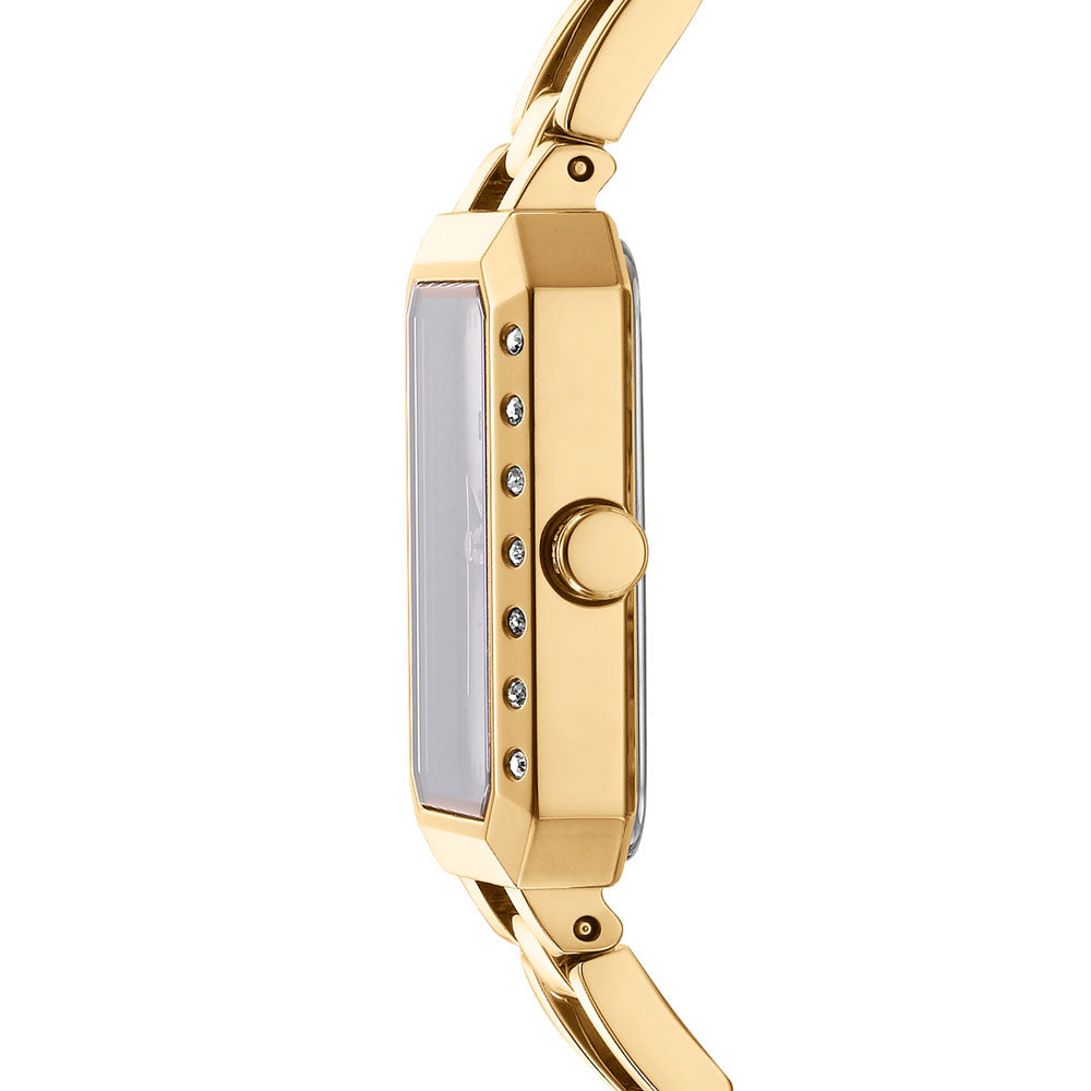 Featuring a sleek rectangular 22 x 35.5 mm stainless steel case with smooth, delicate angles, this timepiece adds effortless elegance to any look. The dial is accented with minimalist bar indexes, inspired by the iconic NYC skyline, creating a refined, contemporary aesthetic.