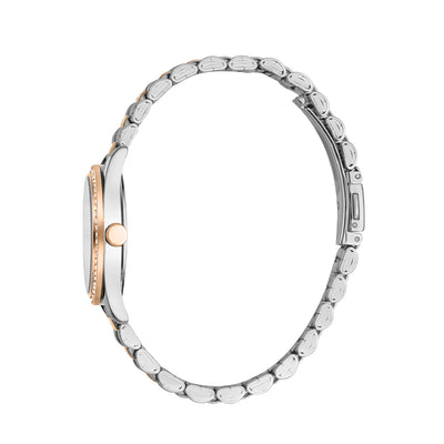 Filled with sophisticated details. Two - tone rose gold , stone encrusted dial, jeweled hour markings and date window. All these make up a beautiful jewelry on your wrist.