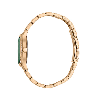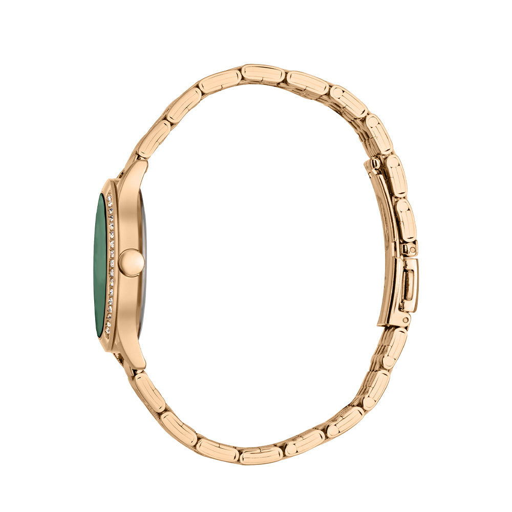 Our gold watch with a beautiful green face and a silver strap will make you look like a million bucks without any effort. What you've been hoping for as a present.