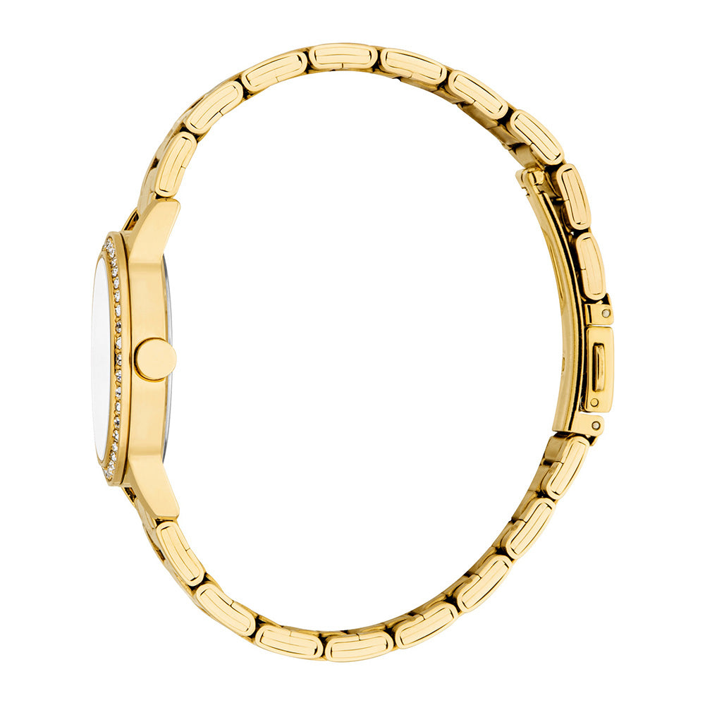 This watch is all about making a statement. The gold-tone finish is pure elegance, and the crystal accents add a bit of glam that’s sure to catch the eye. It’s your new go-to for when you want to add a little extra sparkle to your day.