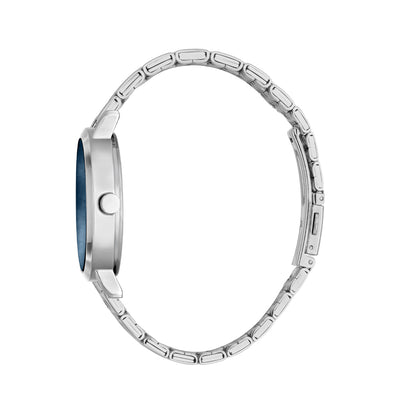Mix and match your go-to watch looks in the low-key style you love with this classic and simple stainless steel watch with a clean blue dial.