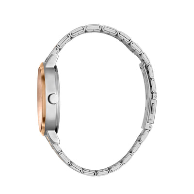 Mix and match your go-to watch looks in the low-key style you love with this classic and simple two tone stainless steel watch with a clean dial.