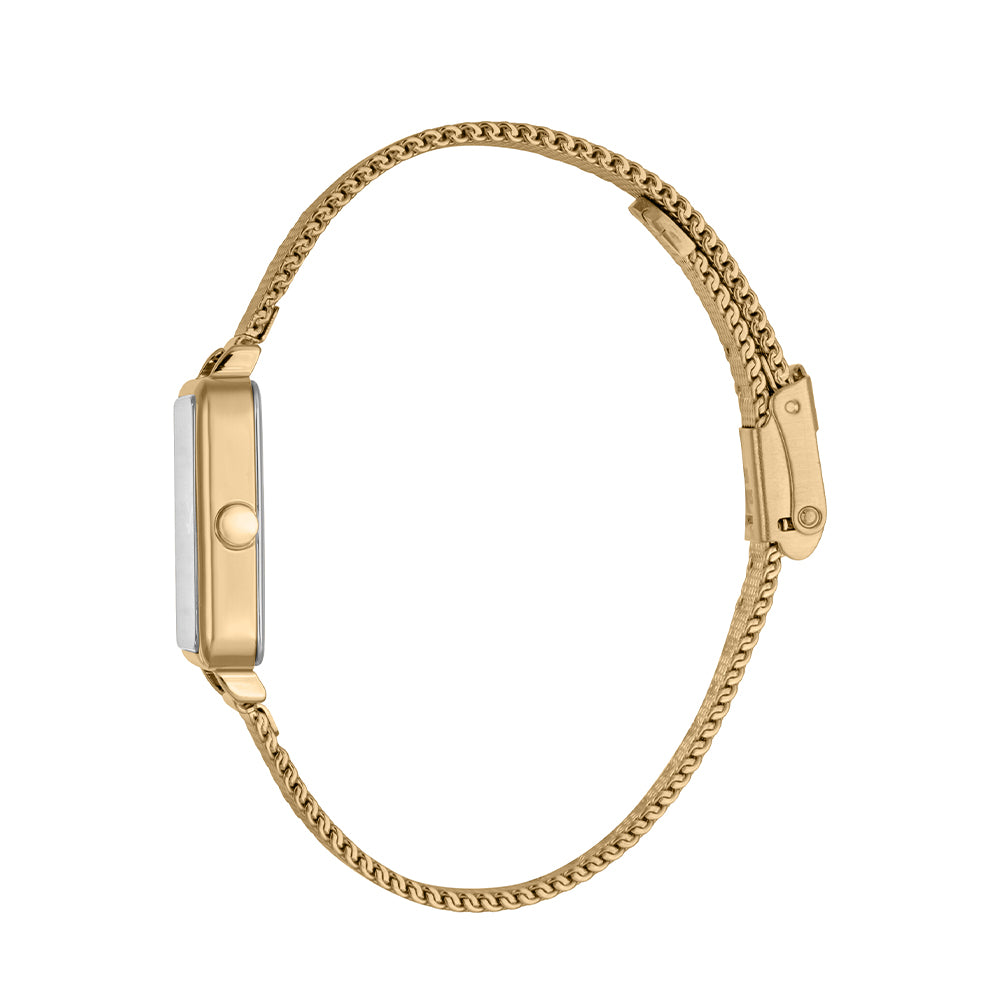 Perfect to style with both casual and dressy outfits, this square face watch in gold mesh bracelet boasts a distinct aesthetic that's versatile enough to pair with anything in your wardrobe.
