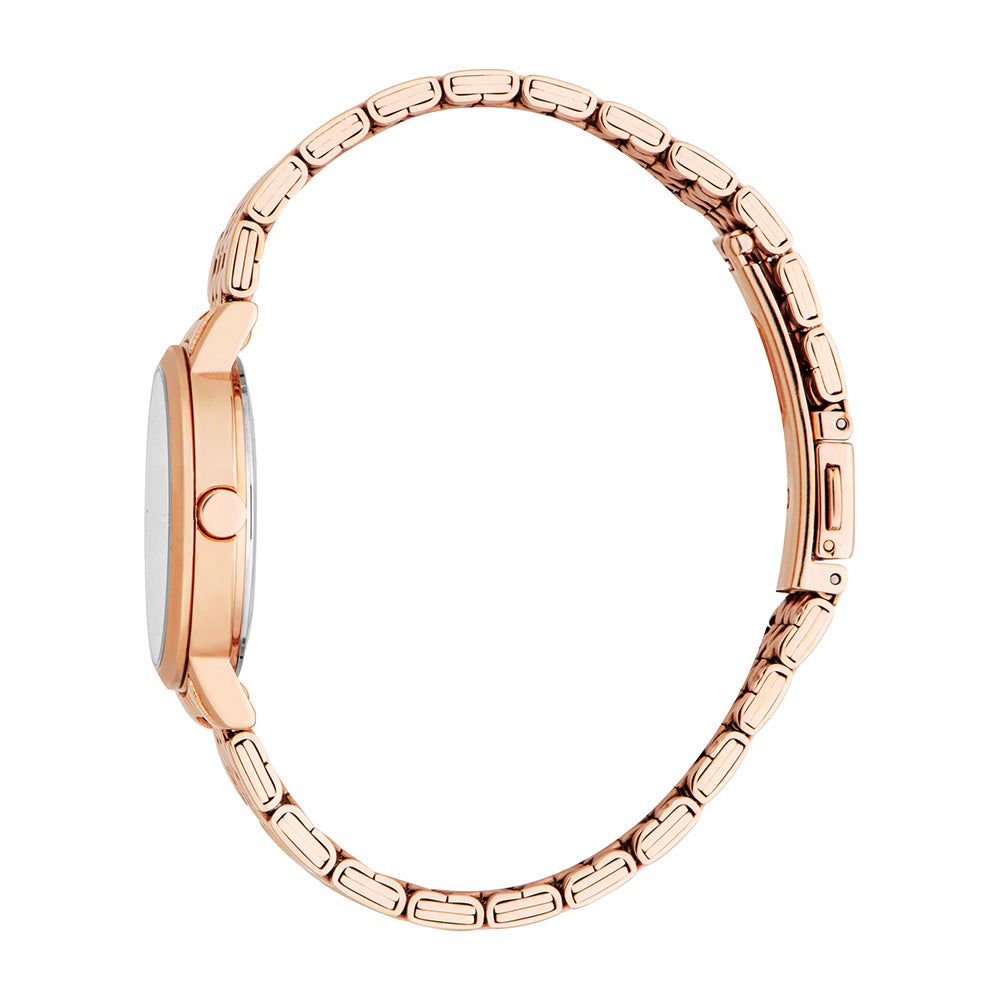 a Silver Dial in a graceful Rose Gold Strap, adorned with a Round Case ? a symphony of timeless beauty. The radiant silver dial complements the warm tones of the rose gold strap, creating a coordinated ensemble that embodies classic grace. Elevate your style effortlessly with this refined set, a perfect blend of sophistication and modern allure for any occasion.