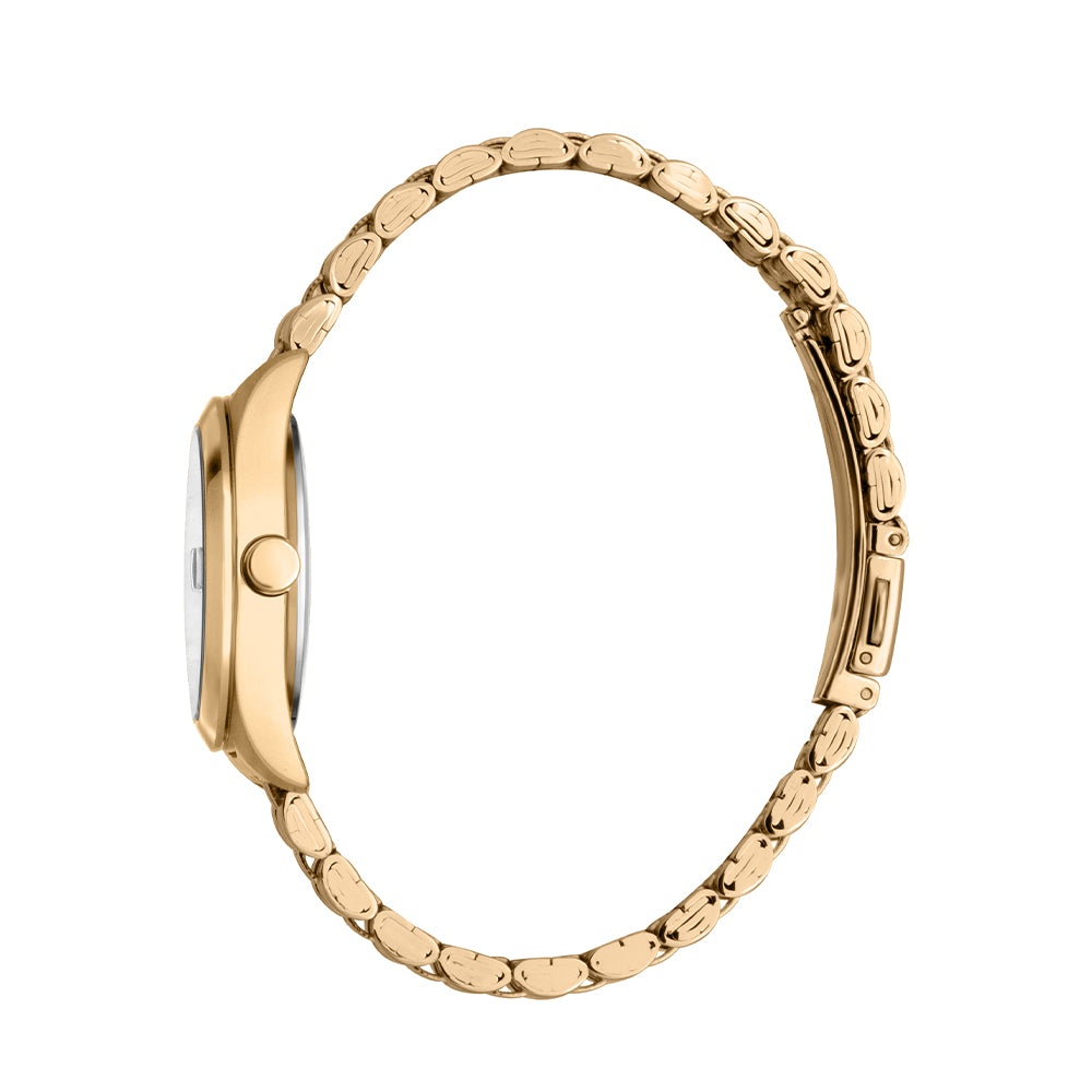 The gold colour on the stainless steel case and bracelet give a dainty show. Adding up the gold touches from the indexes and hands complete the timeless luxury experience.